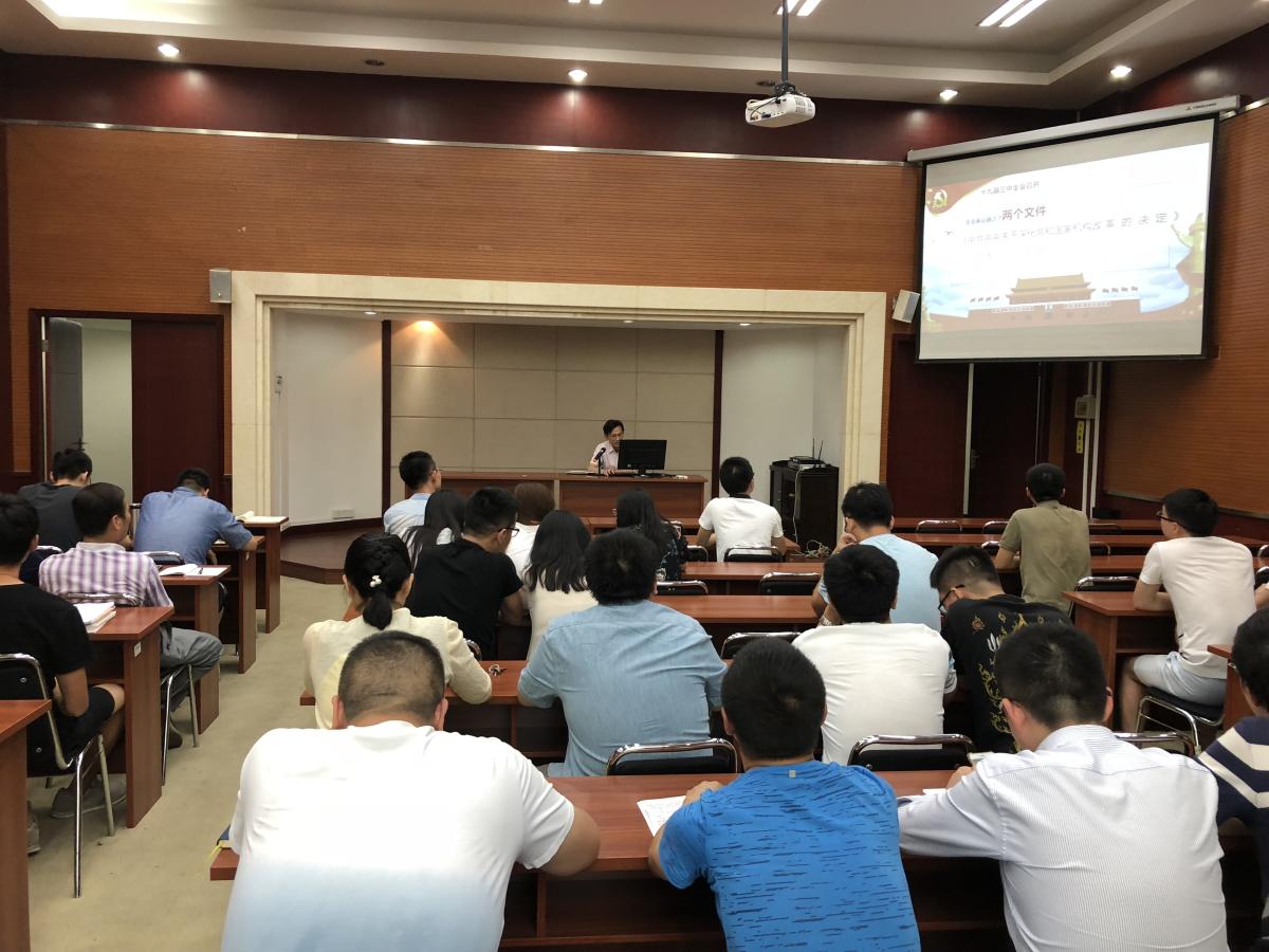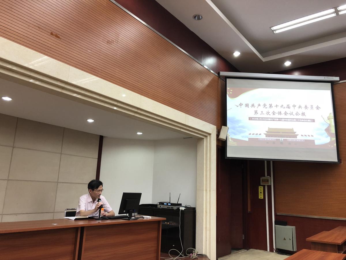 为了进一步学习宣传贯彻党的十九大精神,深入推进“两学一做”学习教育常态化制度化,6月28日下午16:00,力学与工程学院党委金建明书记为学院研究生党员和机关及退休教工党支部讲授专题党课,题目为“深入学习中国共产党第十九届中央委员会第三次全体会议公报”。