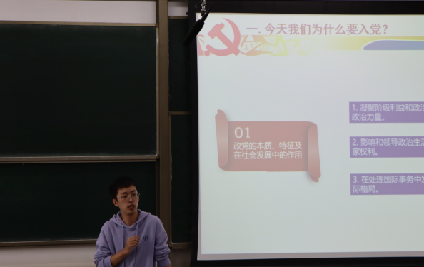 首先,胡持老师为同学们介绍了政党的本质、特征及在社会发展中的作用,让同学们认识到了党在政治生活中的重要作用、在处理国际事务中的积极效应以及加入中国共产党的重要意义。