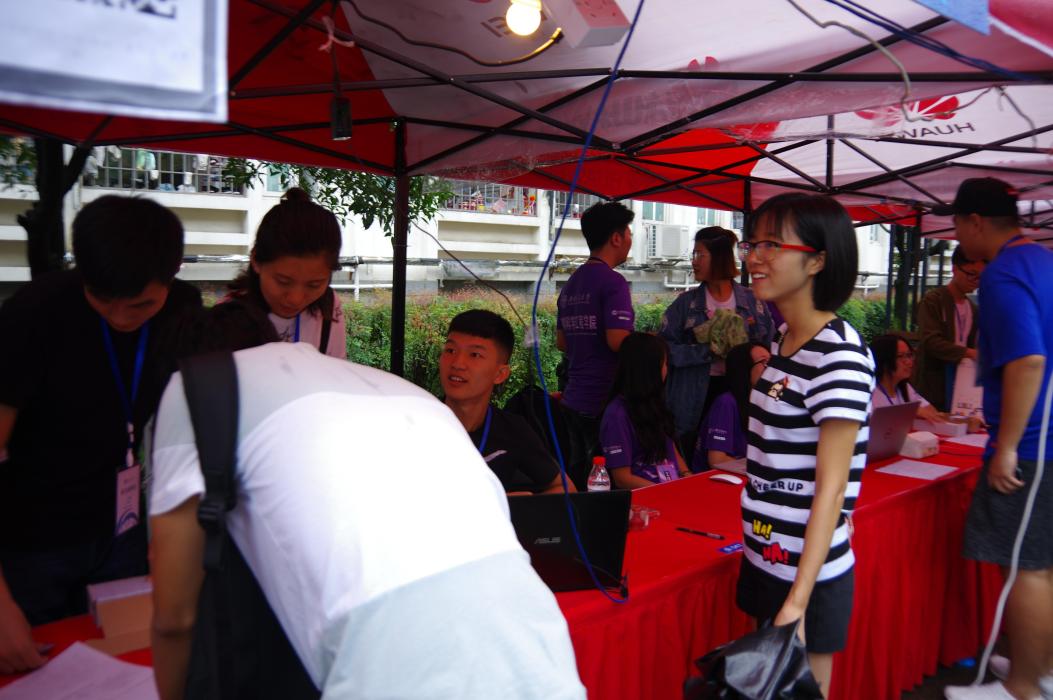 随着一大波学弟学妹的到来,迎新的同学们忙得不可开交的同时,发挥出了理工科生做事特有的细心和有条理,为新生登记信息,发放材料,引导新生去宿舍。