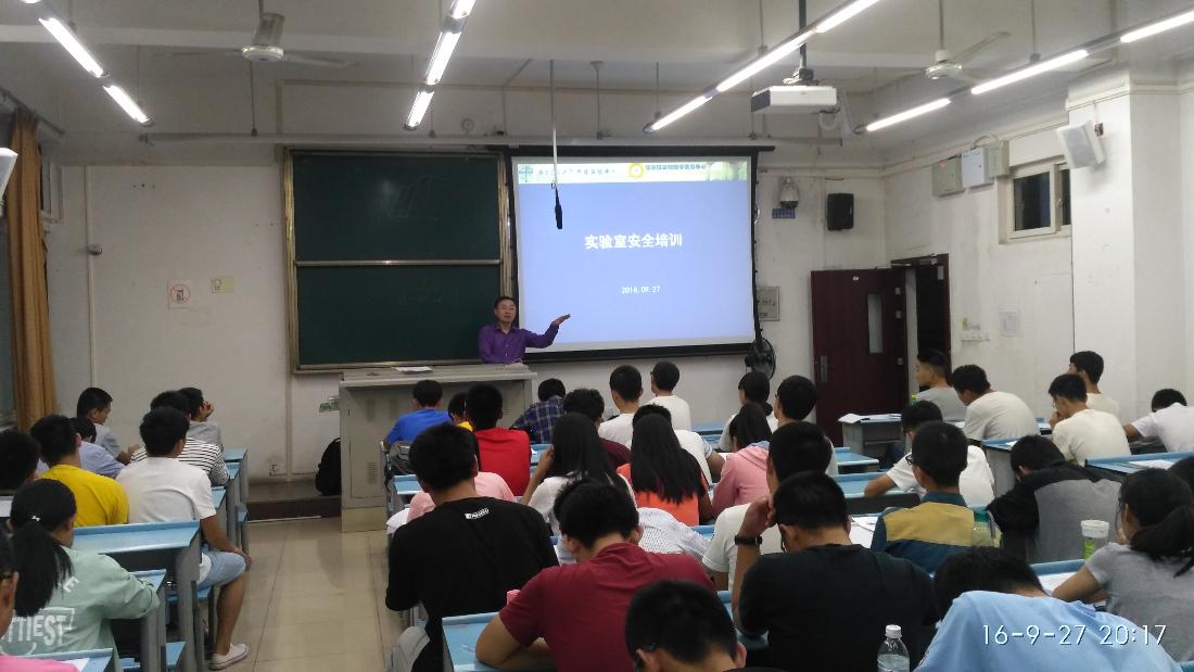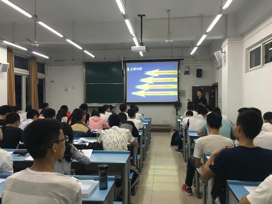 2016年9月27日晚,力学与工程学院针对2016级新生开展了安全知识讲座,主要包括实验室安全和日常安全。力学学院院长助理高芳清老师出席本次讲座。