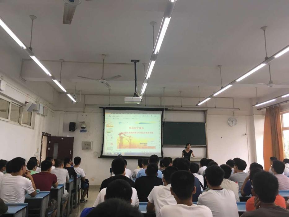 接着16级辅导员杨婧老师从新生入学适应、学生管理、安全教育三个专题进行了详细讲解。