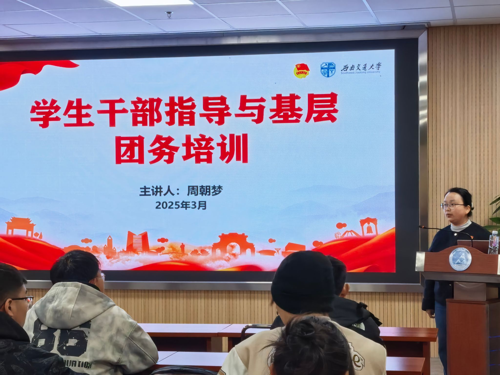 本次活动邀请校团委周朝梦老师担任主讲嘉宾,以“新时代学生干部的使命担当与团务实践”为主题展开培训。周老师结合实例,从“学生干部的角色定位”“共青团工作的规范化流程”“活动策划与组织技巧”三方面深入讲解。她强调,基层团支书要主动服务青年需求,创新团日活动形式,并现场演示了“智慧团建”系统的操作流程,解答了团关系转接、团员发展等实务问题,为团干部高效履职提供了系统指导。
