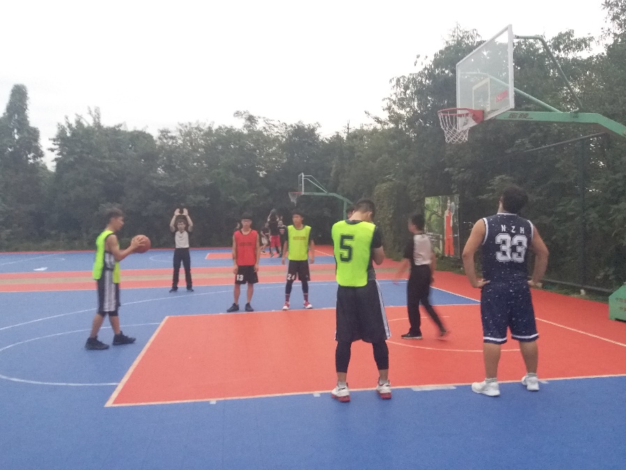 5点50,比赛正式开始,值得一提的是,力院的各位队员中午刚刚结束一场比赛,下午接踵而来的又是一节体育课,因此,在赛前,力院队员们的体力状况值得担心。随着一声哨响,双方开始争球,力院的中锋一个跳跃为队员争到球权,赛前的体力阴霾一扫而光。但奈何手感不佳,被地院球员断掉,地院10号球员韩舒宁迅速上篮得手,先得两分。我大力院怎能示弱?13号杨泞瑞以两分中投予以反击。遗憾此后力院队员未能再得分,而地院队员乘机再得6分,第一节战罢。