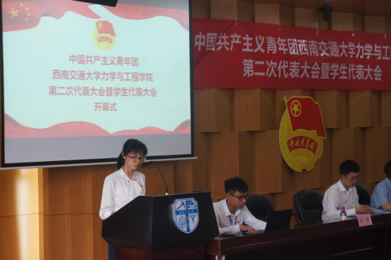 力学与工程学院第二次代表大会暨学生代表大会在图书馆二号报告厅召开。本次大会由四个代表团组成,应到代表101人,因病、因事请假9人,实到92人。校团委副书记王蔚,力学学院党委书记栗民,党委副书记、学生工作组组长孔祥彬,工会主席刘菲,校学生会副主席杜明阳,力学学院团委书记杨婧,副书记张英蓉、胡持,各兄弟院系的团委老师们,以及92名团员代表出席了大会开幕式。本次大会开幕式由力学学院团委书记杨婧主持。