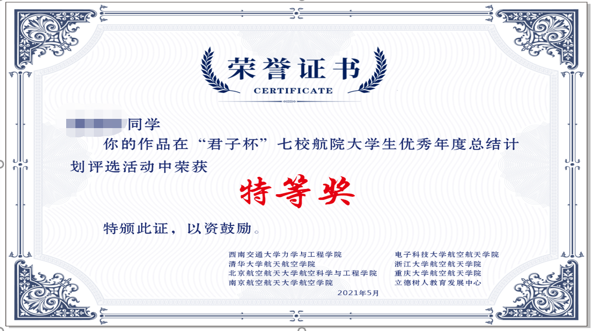 联合清华大学、浙江大学、北京航空航天大学、南京航空航天大学、电子科技大学、重庆大学等校航院以及学校立德树人教育发展中心联合举办了“君子杯”七校航院大学生优秀年度总结计划评选活动,引导大学生们“慎独”和“自省”,养成撰写年度总结计划的好习惯。