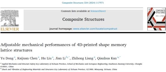 近日,阚前华教授研究小组在4D打印形状记忆点阵结构力学性能调控研究上取得重要进展,相关工作以“Adjustable mechanical performances of 4D-printed shape memory lattice structures”为题发表在材料科学领域TOP期刊《Composite Structures》(IF:6.3)。素人AV
