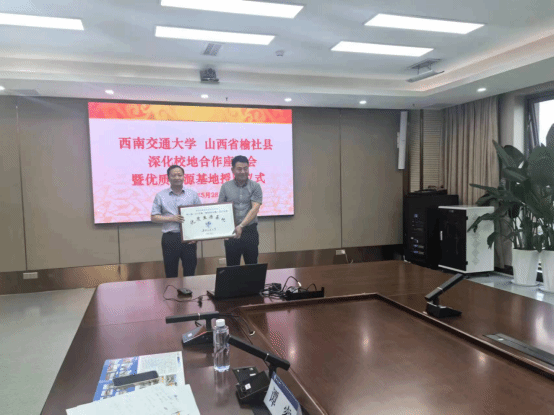 副院长阚前华教授代表学校向山西省榆社中学授予“优质生源基地”牌