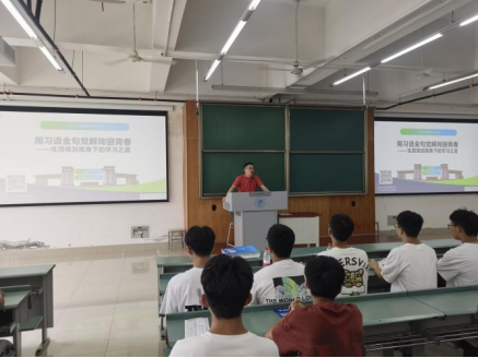 本次讲座,孔祥彬老师以“用习语金句觉解绚丽青春-生涯规划视角下的学习之道”为主题,从学院发展历史开始,为同学们介绍专业发展概况、历届就业及深造情况、用人单位看重的能力和素质,从而引起学生对职业生涯规划的思考和重视。