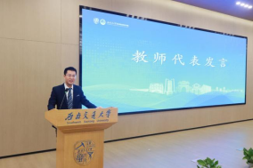 典礼第六项,2024级研究生代表孙敬淳发言。孙敬淳同学分享了自己的攻读素人AV