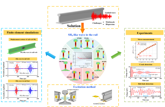 铁路是重要的国民经济基础设施,百年来不论技术如何发展演变,使用轨道来实现支撑和导向是轨道交通区别于其他交通最重要的特征。中国高铁已由大规模建设进入高质量运用和维护阶段,以钢轨为代表的关键结构的安全保障任务迫切。传统逐点扫描的无损检测方法已不能满足智慧运维的新要求,迫切需要发展在线监测技术。超声导波是实现在线监测最具前景的技术之一,然而钢轨中的导波具有显著的多模态和频散特征,不仅导致信号具有高度的复杂性、解析困难,也难以实现长距离监测。