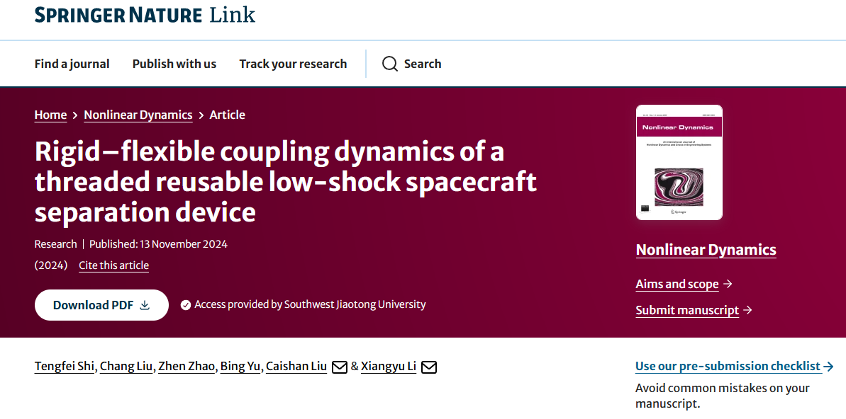 李翔宇教授课题组在航天器机构动力学方面取得进展,相关成果以“Rigid-flexible coupling dynamics of a threaded reusable low-shock spacecraft separation device”为题发表在动力学领域期刊《Nonlinear Dynamics》。素人AV