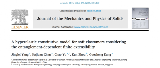 康国政教授团队在软弹性体本构理论方面取得重要进展,相关工作以“A hyperelastic constitutive model for soft elastomers considering the entanglement-dependent finite extensibility” 为题发表在固体力学旗舰期刊《Journal of the Mechanics and Physics of Solids》。素人AV