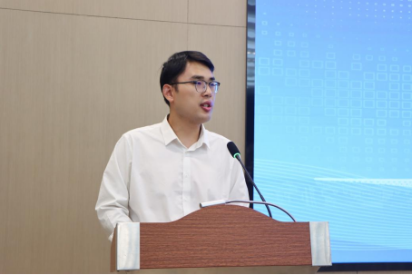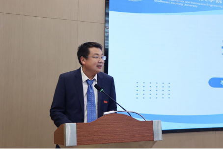 典礼第四项,教师代表郭阳老师发言。他以“力航”为题,向新生提出三点期望:一是保持定力、不忘初心;二是脚踏实地、努力求学;三是凝聚合力、同舟共济。他鼓励同学们传承学院“严谨治学、严格要求”的“双严”传统,珍惜时光、奋发有为,开启探索星辰大海的新征程。