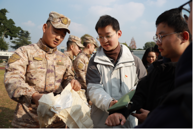 挂牌仪式后,在部队官兵的带领下,师生党员参观了营区基础设施、训练场地及荣誉室。沿途官兵细致讲解了部队历史沿革、重大任务执行成果,整齐划一的营区环境、纪律严明的军人作风、熠熠生辉的荣誉勋章,让师生党员直观感受了新时代军队建设成果,深刻体悟了红色传统的精神力量。参观期间,部队官兵还开展实用技能培训,围绕心肺复苏、伤口包扎、骨折固定等基础急救知识进行实操教学,师生党员分组实操练习,官兵现场指导纠正,有效提升了大家的应急救护能力。