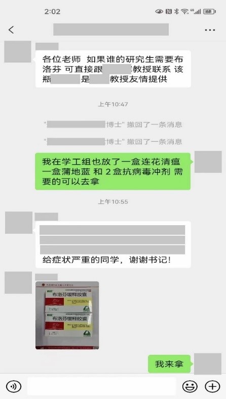 同学们接连出现了发烧、咳嗽、浑身酸痛等症状。面对一药难求的情况,师生们纷纷匀出自家药物,自愿捐助布洛芬、连花清瘟、泰诺等稀缺药品,给同学们设立爱心共享药箱,受到同学们一致点赞。