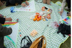 下午两点半,活动正式开始。为了快速拉进同学们的距离,让彼此走出舒适区,敞开心扉、热情交友,主持人现场组织开展了暖场小游戏—“五毛一块”来活跃气氛,同学们男女互相随机组队,游戏出局的同学进行了简单的自我介绍和才艺表演,随着游戏的推进,增进了彼此的认识,同学间友谊不断升温,活动气氛愈加融洽。暖场游戏过后,主持人介绍了活动开展的后续流程并强调了相关的安全事项,然后进行风筝绘制DIY。