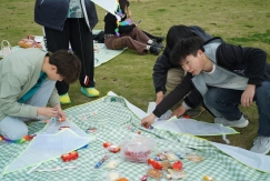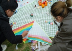 在满园春光里,同学们兴致盎然,以两两为一组,通力合作,充分发挥天马行空的想象力,在风筝上写下对未来的寄托、画出心中的乌托邦、涂上最喜欢的色彩。透过小小的一块风筝纸,暂时忘却烦恼、寄托真挚的梦想。