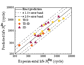该模型对镁合金在不同变形机制下的损伤演化(图3)和疲劳寿命(图4)给出了较为合理的预测结果。若进一步将该损伤模型与准确的晶体塑性本构模型结合,可以将模型对疲劳损伤行为的预测能力拓展到多晶任意织构镁合金,从而加深对镁合金损伤机制的理解。