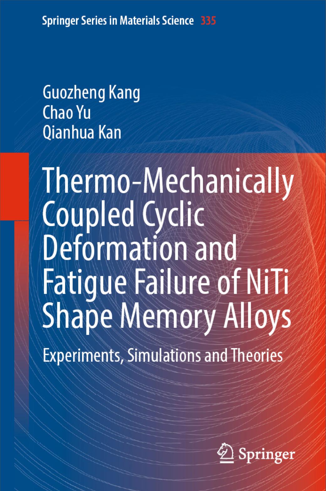 康国政教授、于超教授和阚前华教授受邀由Springer出版集团出版了英文专著“Thermo-Mechanically Coupled Cyclic Deformation and Fatigue Failure of NiTi Shape Memory Alloys:Experiments, Simulations and Theories”,分七个章节,共306页(ISBN: 978-981-99-2752-4)。