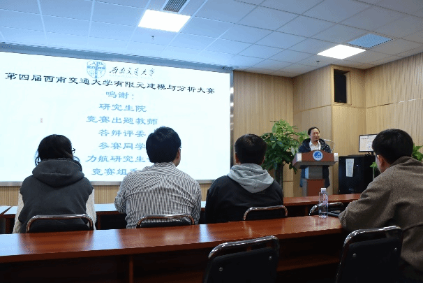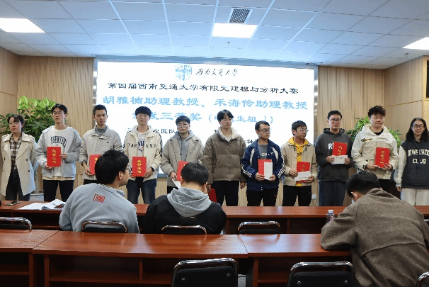 建模与分析大赛(SWJTU_FEMAC4)。本次大赛旨在提升同学们的有限元建模与分析水平,并为学生提供技术交流、相互学习的平台。本次竞赛吸引了来自11个学院、287名同学、共111支队伍参赛(其中本科生组55名同学,共22支队伍;研究生组232名同学,共89支队伍)。经过竞赛组委会对参赛作品的筛选,最终73支队伍进入决赛答辩环节(其中本科生组15支队伍,研究生组58支队伍)。