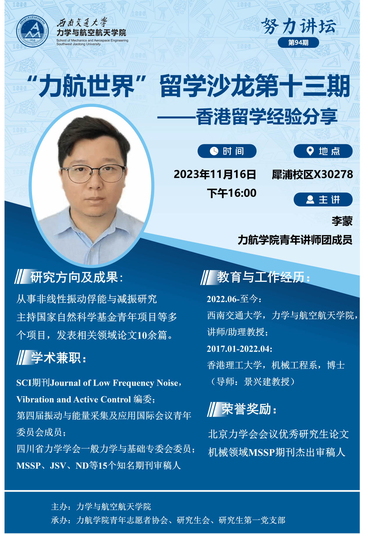 任教。本次活动,李蒙老师以“香港求学经历分享”为题,主要从学习和工作经历、香港高校介绍、香港学习生活介绍、政策及优劣势等方面进行分享。