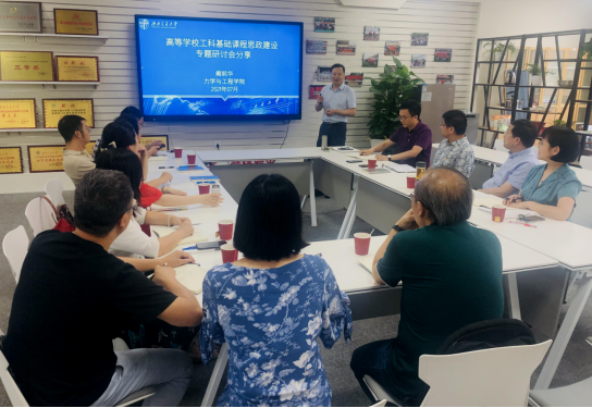 课程思政工作坊第二期在力学学院教职工之家举行。校党委副书记沈火明、教务处副处长代宁、力学与工程学院党委书记栗民、副书记孔祥彬、副院长阚前华、党委教师工作部唐秀军以及来自土木学院、机械学院、数学学院、物理学院、力学学院的15位老师参加了工作坊,本期工作坊由代宁副处长主持。