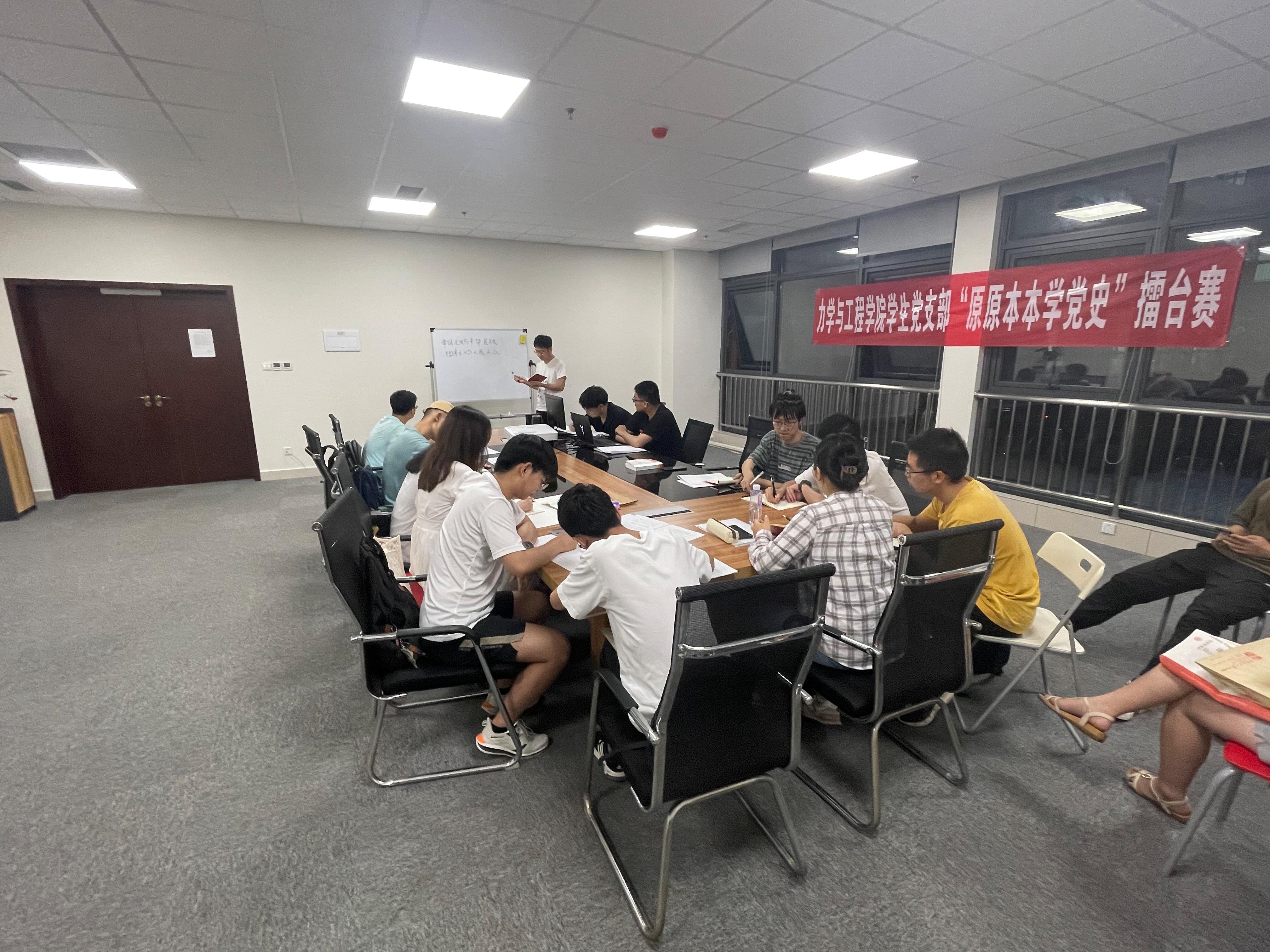 2021年6月10日,学院本科生党支部在X30223进行了“原原本本学党史”擂台赛第一场,党支部的学生党员们参加了本次擂台赛。