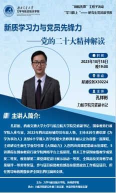 孔老师深入解读了党的二十大精神,与参加讲座的同学讨论了《习近平新时代中国特色社会主义思想学习纲要》中的相关内容。然后,孔老师结合学院专业特色和学院发展实际与党员同志们对“新质学习力和党员先锋力”的内涵进行了交流,启发了党员同志们对今后的学习和工作新的思考。孔老师强调青年学生是时代新人,大家要努力提升自身的综合素质,要做党的政策主张的传播者、时代风云的记录者、社会进步的推动者、公平正义的守望者,成为担当民族复兴大任的时代新人。
