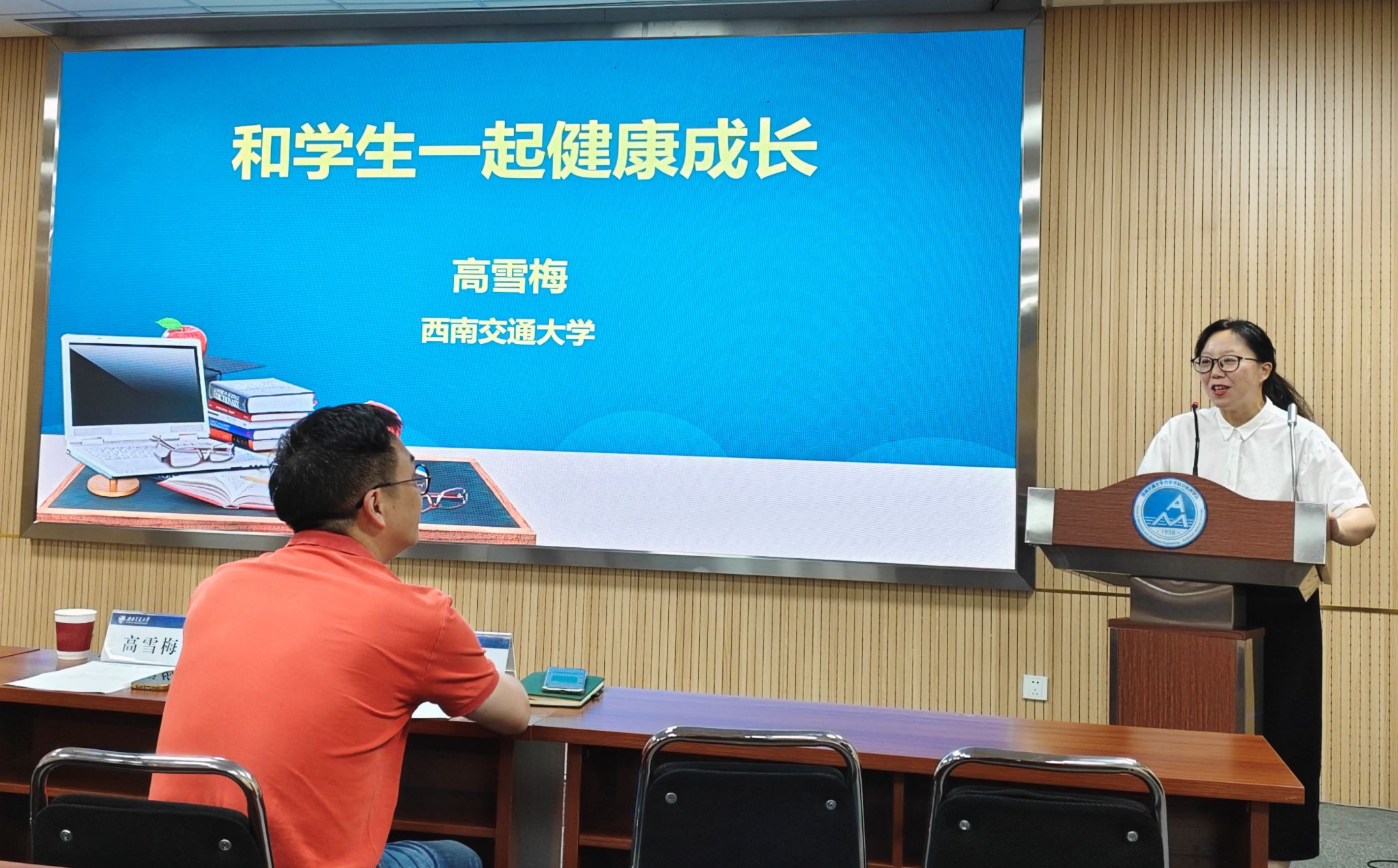 沙龙第一项议程,高雪梅主任针对研究生导师心理健康教育工作,从研究生心理健康现状、导师的角色和职责、如何与学生健康成长三个方面展开辅导。她用调研数据阐述研究生心理健康现状,指出导致研究生心理问题的主要影响因素,强调立德树人是导师的职责和使命,对学生的生涯指导和心理健康的关心是必不可少的。