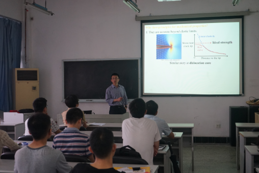 Liang Qi助理教授2003年于清华大学材料科学与工程系获得学士学位,2009年在宾夕法尼亚大学获得博士学位,后担任密歇根大学安娜堡分校材料科学和工程系助理教授。Qi博士带来的报告题目为“过渡金属合金力学性能的第一性原理研究(First-Principles Studiesof the Mechanical Properties of Transition Metal Alloys)”。近年来,Qi博士主要研究通过优化的电子结构来提高过渡金属固有的延展性等。预测过渡金属合金的机械强度和延展性目前仍然具有挑战性。Qi博士介绍了采用第一性原理来计算填隙原子与螺型位错中心的关系。对层错能的间接研究和对位错中心的直接研究都表明了,氧原子和其他大的间隙原子,会被螺型位错中心强烈排斥。这种排斥的根源是hcp晶格的对称性低。原位小尺度力学测试表明,实验结果与理论计算吻合的很好。