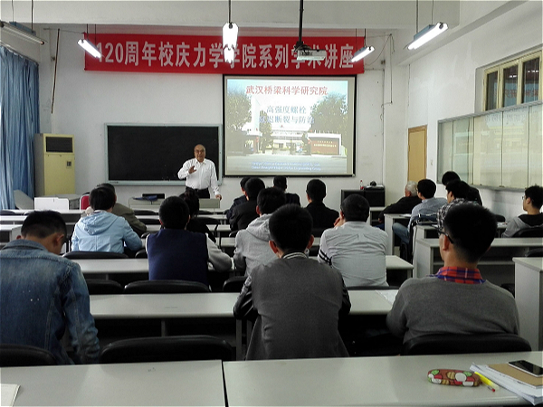 “创源”大讲堂暨校庆系列学术讲座在九里校区机械馆2506会议室顺利举行。此次讲座的嘉宾是力学1959级校友穆金禄教授,穆教授现任武汉桥梁科学院的教授级高级工程师,此次讲座题目为“高强度螺栓延迟断裂与防治”。