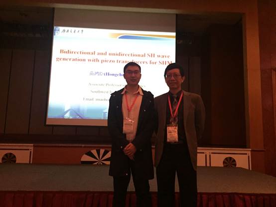苗鸿臣副教授参加了本次会议,在Guided wave-based SHM分会场作了题为“Bidirectional and unidirectional shear horizontal (SH) wave generation with piezoelectric transducers for structural health monitoring”20分钟报告,并作为分会场主席,主持了Mechanics-based SHM&NDT分会场。