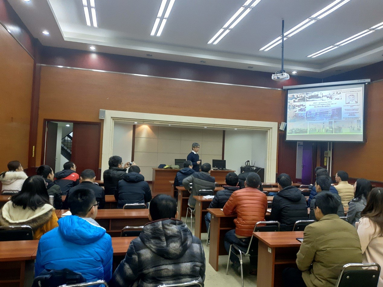 九里行政楼240力学学术报告厅做学术讲座,讲座题目为:Density-based dislocation dynamics。力学与工程学院院长康国政教授,蔡立勋教授、李翔宇教授、阚前华教授、张娟副教授、苗鸿臣副教授、袁江宏副教授、刘金玲副教授等教师,以及力学与工程学院研究生参加了此次学术报告。