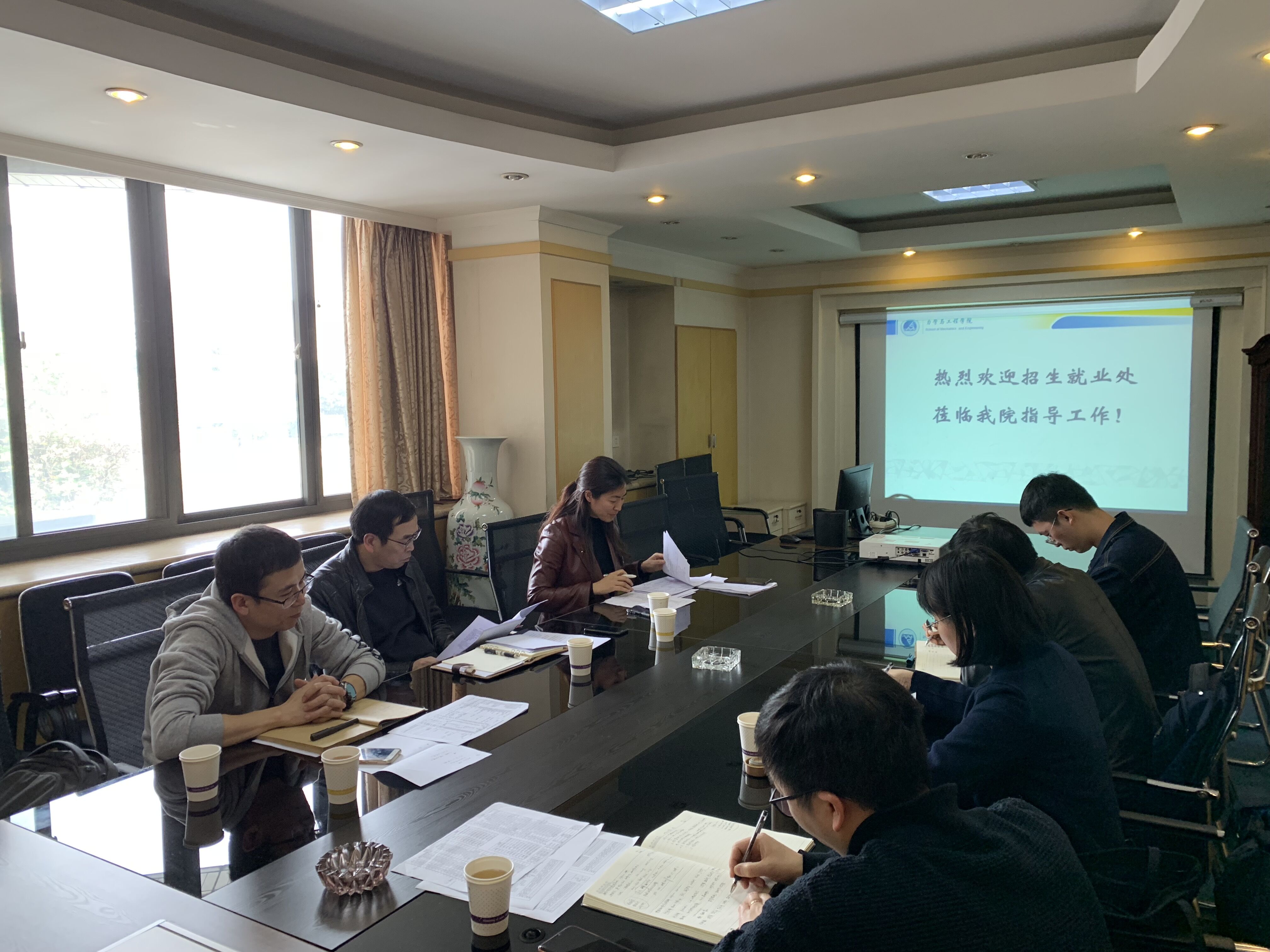 首先,陈岩峰处长表示本次调研的主要目的是了解学院招生就业相关工作情况,对实际工作中存在的问题进行探讨。陈处长还表示,学院要在目前高升学率优势的基础上,进一步提升国内深造率和出国率,同时优化毕业生就业结构。