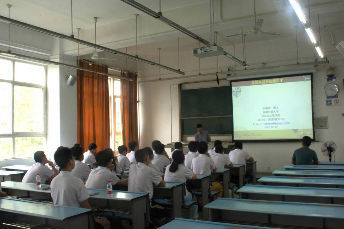 丹桂飘香的9月,力学与工程学院迎来了2019188名本科生与81名研究生。96日下午2:00,学院在图书馆二号报告厅举行了新生开学典礼。学院院长康国政,党委书记栗民,党委副书记孔祥彬,副院长高芳清、李翔宇、阚前华,2019级各班班导师部分学工组辅导员出席了典礼。典礼由孔祥彬老师主持。