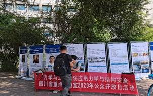 力学与工程学院应用力学与结构安全四川省重点实验室根据自身特点与当前实际情况,设计出以“科学抗疫、创新强国”为主题的“力学公众开放及科普活动”,并于2020年8月24-29日圆满开展了公众开放日活动。该系列活动以展览形式在犀浦校区与九里校区同时进行,取得较好的社会反响。