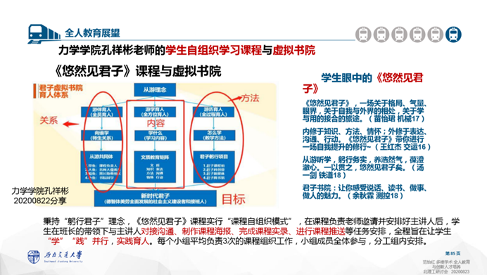 跨学科通识课程的建设情况,其中,重点介绍了力学与工程学院孔祥彬老师等人开设的《悠然见君子》课程。