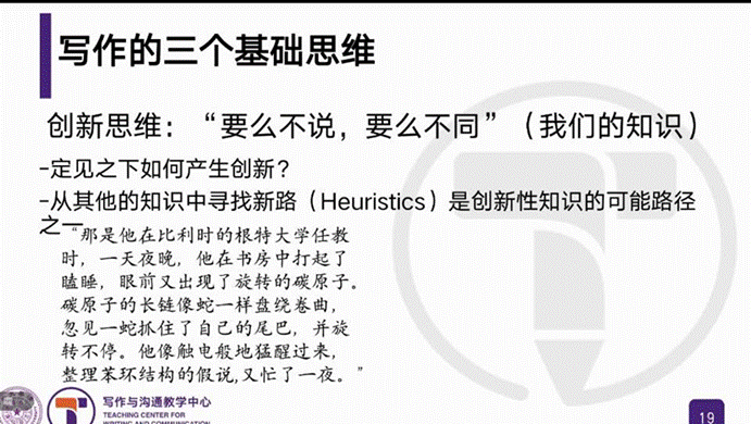 基于写作的基本要领,梅老师提出了三个基本思维:读者思维、结构思维、创新思维。读者思维是找到对应读者的知识台阶和接口,“设身处地”是表象,“找到接口”才是目的。“只有结构化的知识才有意义”是梅老师提出的又一观点,知识的本质是来自复杂世界的降维,复杂世界的两个特征是时间与空间,对应这两个特征出发,实现复杂性的“工程型”重构才能做好文章结构的把握。梅老师总结了结构化的三个关系:计划和变化的关系、加法和减法的关系、风格和套路的关系。而关于创新思维,梅老师呼吁我们要有摆脱定见的勇气。