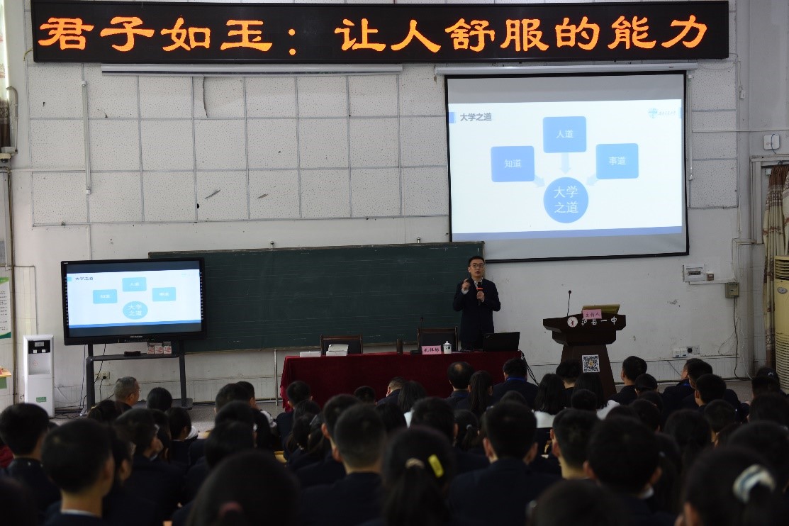 孔祥彬老师以“君子如玉:让人舒服的能力”为题进行专题讲座。他首先回顾了自己在泸县一中求学的经历,向培育自己的母校表示衷心感谢。接下来,他以《礼记·聘义》为引子,介绍了君子比德与玉的典故,并从“仁、义、礼、智、信”和“温、良、恭、俭、让”十个方面来阐释如何在日常学习、生活中扬君子之风,达到让人舒服的状态。在讲解过程中,他列举了很多发生在交大师生中的案例,介绍了素人AV