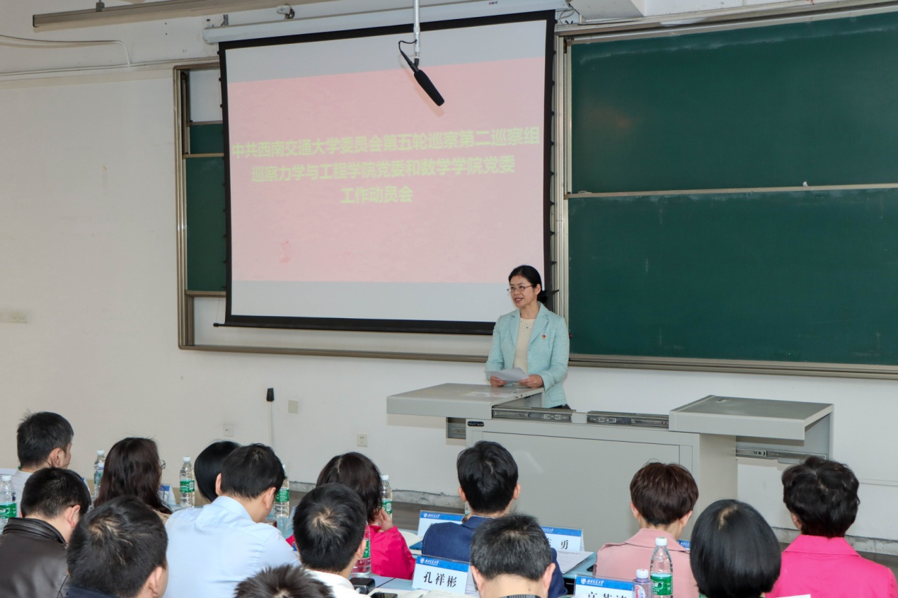 委员会第五轮巡察第二巡察组巡察力学与工程学院党委和数学学院党委工作动员会召开。动员会前,巡察组分别与两个学院领导班子作了见面沟通。会上,第二巡察组组长苏小桦作了动员讲话,通报了巡察工作主要任务、工作安排和要求,学校纪委副书记兼巡察办主任李立受学校党委巡察工作领导小组委托对做好巡察工作提出了要求。力学与工程学院党委书记栗民和数学学院党委书记徐革分别作了表态发言,力学与工程学院院长康国政主持会议。
