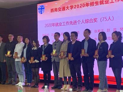 2020年毕业生就业工作先进集体一等奖,学院党委书记栗民上台领奖,校党委沈火明副书记为学院颁发了奖状。学院苗鸿臣老师获2019-2020学年本科生招生宣传工作个人奖,学院张英蓉老师、周子涵老师获2020年就业工作先进个人综合奖。